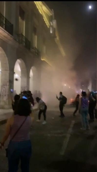 Durante la marcha con motivo del Día Internacional de la Mujer, las manifestantes quemaron cartelones y dejaron pintas y a lo largo y ancho de la sede del Ejecutivo estatal para exigir justicia.