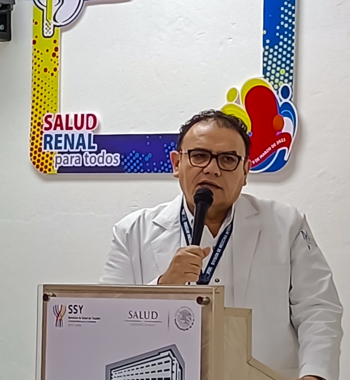 En el acto, el director del Hospital, Marco Antonio Cetina Cámara, recordó los inicios del Área de Nefrología y Hemodiálisis, y reconoció a Reyes Manuel Sosa Manzanero, pionero en el lugar de esta rama, con una destacada trayectoria al frente de ella, que ha beneficiado a múltiples personas con ERC, de la mano de más especialistas.