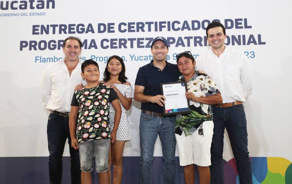 Por lo que toca a los 205 certificados, los entregó a familias que se ubican en la calle 55-C entre 58 y 60, de Flamboyanes. Dentro de los procesos que lleva a cabo el Instituto de Vivienda (IVEY), está la regularización de asentamientos en Mérida, Tekax, Motul y Progreso, entre otros municipios, con el fin de dar certeza jurídica a las familias; en los 4 años de la presente administración, 950 personas en la capital han contratado y firmado para tener este beneficio, en un total de 13 terrenos.