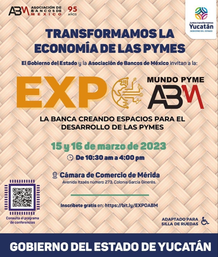 Este encuentro se llevará a cabo los días 15 y 16 del presente, en la Cámara de Comercio de Mérida, de 10:30 de la mañana a 4:00 de la tarde, por lo que se invita a los emprendedores, pequeños y medianos empresarios interesados, a registrarse en la liga bit.ly/EXPOABM.