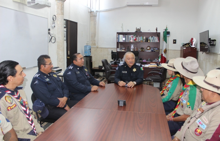 Durante la reunión Romero Escalante dijo a los integrantes del Grupo 6 pertenecientes a la Asociación Nacional de Scouts Independientes la labor que se realiza en la Policía Municipal de Mérida desde el aspecto preventivo hasta lo relativo a la seguridad.