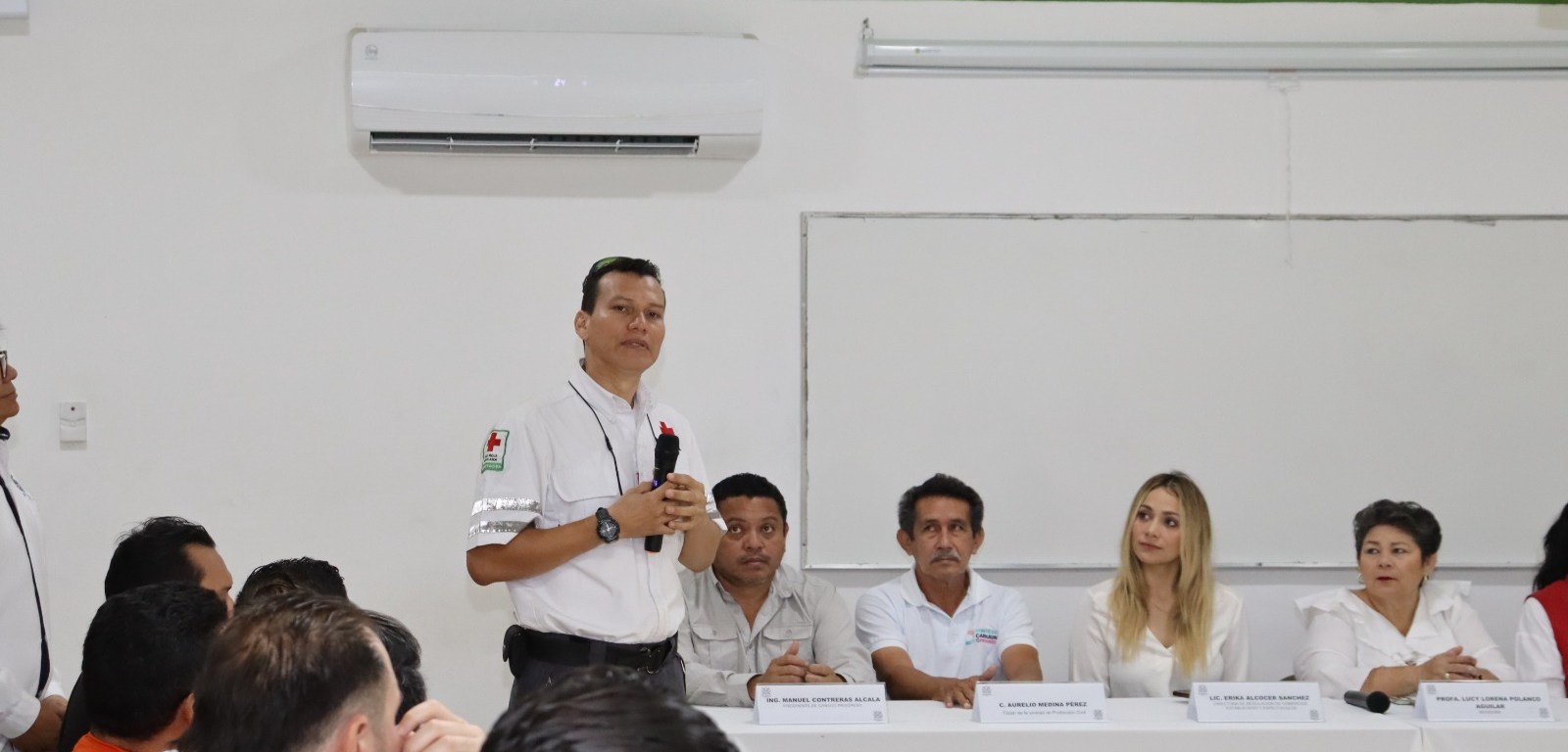 Acudieron a la inauguración la regidora de Educación y Salud, Lucy Polanco, en representación del alcalde Julián Zacarías Curi, la presidenta de la Cruz Roja de este municipio, Aurea Gómez Novelo, la directora de Regulación de Comercios Establecidos y Espectáculos, Erika Alcocer Sánchez, el titular de la Unidad Municipal de Protección Civil, Aurelio Medina Pérez, así como el presidente de la CANACO SERVYTUR Progreso, Manuel Contreras Alcalá.