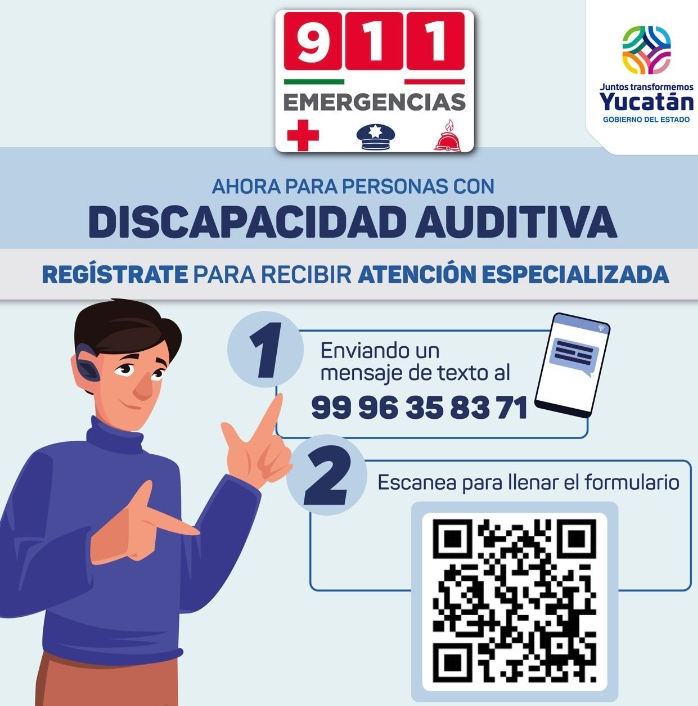 Para agilizar la respuesta de los servicios de emergencia, es importante que las personas con discapacidad se registren previamente en el sitio web https://app.sspyucatan.gob.mx:8002/IIPEDEYv2/Home/Bienvenida, o también por medio de un mensaje de texto al Instituto para la Inclusión para las Personas con Discapacidad (Iipedey) al teléfono 9996358371, en un horario de 9:00 a 16:00 horas, de lunes a viernes.