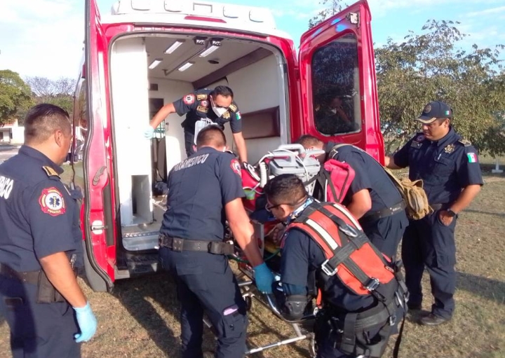 Un hombre de 30 años en condiciones de extrema gravedad por un accidente de tránsito, fue trasladado a Mérida por el helicóptero Bell-429 de la Secretaría de Seguridad Pública del Gobierno del Estado.