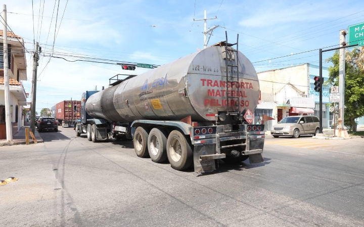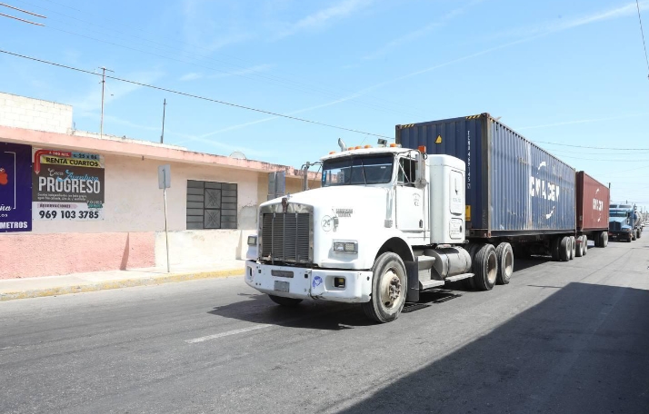 Progreso, Yucatán, 5 de abril de 2023.- Afectados por el congestionamiento y los siniestros de tránsito que genera compartir vialidades con vehículos de transporte de carga pesada, habitantes de Progreso piden una solución para que haya un mayor orden vial en el puerto.