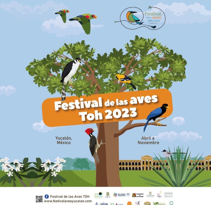 Mérida, Yucatán, 7 de abril de 2023.- Con más de 50 de actividades educativas y de ecoturismo, se realiza la edición 22 del Festival de las aves Toh, evento que hasta el 19 de noviembre fomentará la observación de las aves como una iniciativa para posicionar a Yucatán como un destino para el aviturismo, al tiempo que que se hace un uso sustentable de las especies y sus hábitats.