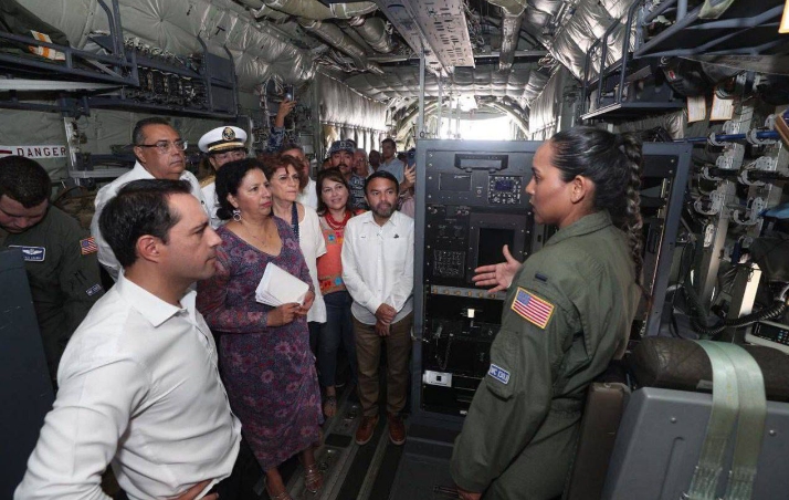 Posteriormente, Vila Dosal realizó un recorrido por el WC-130J Hércules, aeronave militar que escudriña las entrañas de los huracanes y se encuentra en la entidad para refrendar la colaboración entre ambas naciones y difundir la importancia de la anticipación ante la llegada de huracanes.