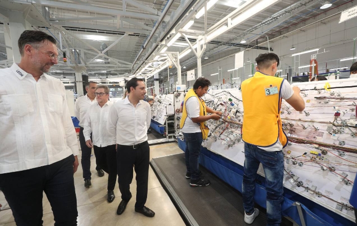 Vila Dosal recorrió las áreas de almacén entrante, corte, preparación de cables, sub ensamblaje, ensamblaje, cockpit, basis, procesos especiales, audio y embarques para constatar las operaciones de cada una. En Yucatán, Leoni cuenta con 2 plantas: la primera, en el fraccionamiento Los Héroes, y esta segunda, en la salida a la carretera Mérida-Campeche, donde laboran ingenieros, técnicos, obreros y administrativos, bien pagados y con oportunidades de crecimiento.
