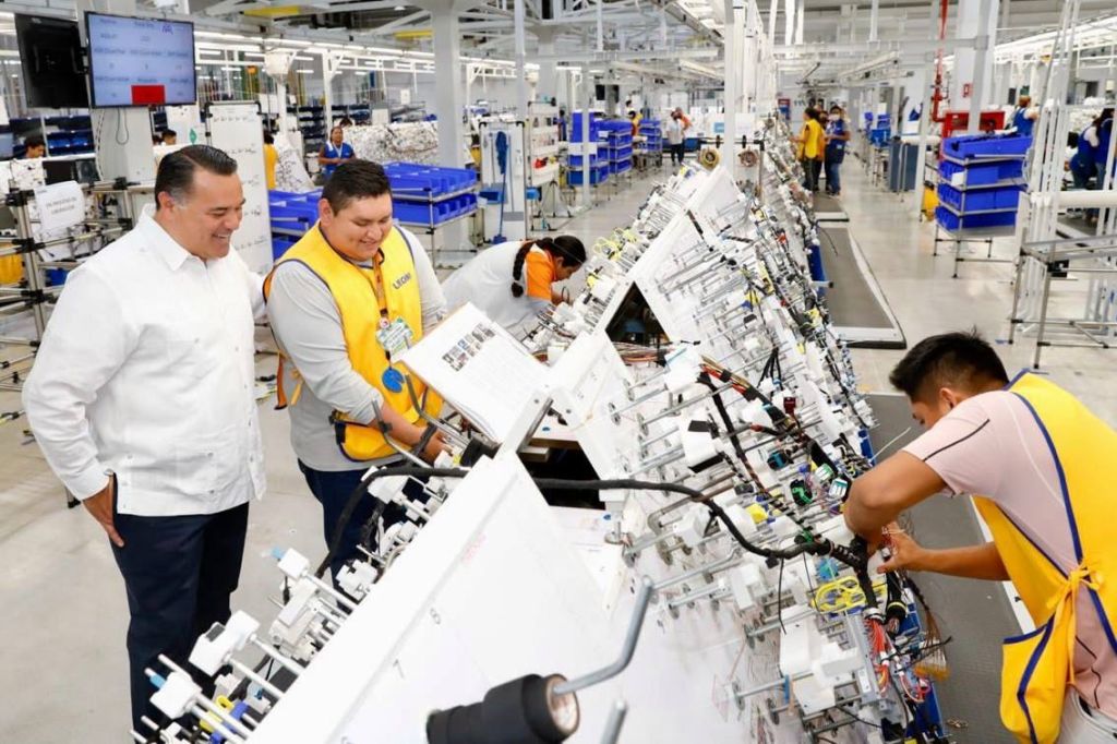 Vila Dosal recorrió las áreas de almacén entrante, corte, preparación de cables, sub ensamblaje, ensamblaje, cockpit, basis, procesos especiales, audio y embarques para constatar las operaciones de cada una. En Yucatán, Leoni cuenta con 2 plantas: la primera, en el fraccionamiento Los Héroes, y esta segunda, en la salida a la carretera Mérida-Campeche, donde laboran ingenieros, técnicos, obreros y administrativos, bien pagados y con oportunidades de crecimiento.