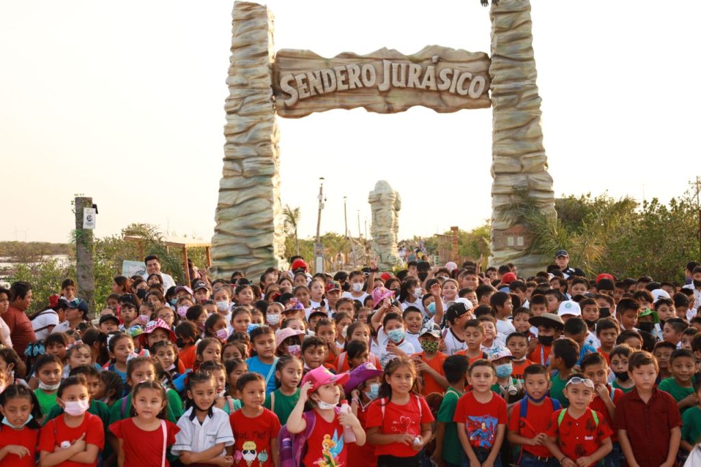 Progreso, Yucatán a 1 de mayo de 2023. Durante el mes de abril, Sendero Jurásico recibió a 5,963 turistas y 3,801 alumnos provenientes de distintas escuelas de todo el estado, rompiendo su propio record de visitas mensuales al registrar un total de 9,764 personas, así lo señaló Cintia Sosa Gómez, Titular de la Dirección de Zona Costera y encargada del Sendero Jurásico. Tan solo el jueves pasado asistieron al parque temático alumnos, maestros y padres de familia de las escuelas del Centro Escolar Indígena Hunab Ku de Mérida, y la Escuela Indígena de Tzucacab, así como de escuelas de los municipios de Tekantó, Dzemul, Kanasín y Conkal.