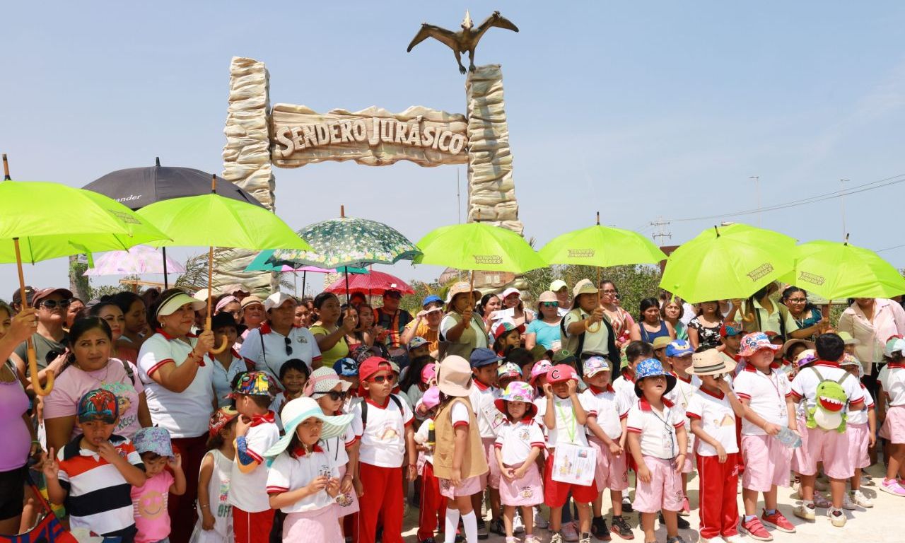 Progreso, Yucatán a 1 de mayo de 2023. Durante el mes de abril, Sendero Jurásico recibió a 5,963 turistas y 3,801 alumnos provenientes de distintas escuelas de todo el estado, rompiendo su propio record de visitas mensuales al registrar un total de 9,764 personas, así lo señaló Cintia Sosa Gómez, Titular de la Dirección de Zona Costera y encargada del Sendero Jurásico. Tan solo el jueves pasado asistieron al parque temático alumnos, maestros y padres de familia de las escuelas del Centro Escolar Indígena Hunab Ku de Mérida, y la Escuela Indígena de Tzucacab, así como de escuelas de los municipios de Tekantó, Dzemul, Kanasín y Conkal.