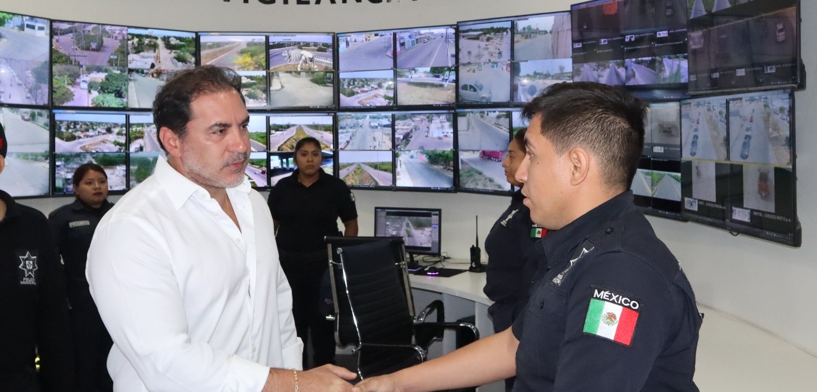 Como parte de su visita a la DSPT, el primer edil también recorrió el Centro de Control, Comunicación y Videovigilancia, donde mencionó “Este centro de vigilancia representa un gran avance en la estrategia de seguridad del municipio, ya que hace posible identificar a tiempo situaciones de riesgo y actuar oportunamente”. Vale la pena mencionar que el Centro de Control, Comunicación y Unidad de Videovigilancia fue inaugurado en marzo del 2022 y está enlazado a la Secretaría de Seguridad Pública (SSP). Este sitio, cuenta con 24 pantallas para recibir el espejo del C5 y 2 pantallas para vigilar las 300 cámaras de todo el municipio. Las labores que se realizan en este espacio representan un beneficio para 65 mil habitantes de Progreso y visitantes.