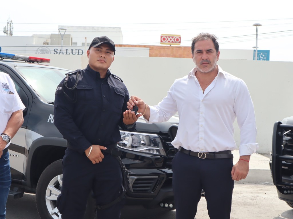 2 de mayo de 2023. Con el propósito de continuar realizando acciones para fortalecer la seguridad de Progreso y las comisarías, el alcalde Julián Zacarías Curi visitó la Dirección de Seguridad Pública y Tránsito (DSPT) para entregar 2 nuevas patrullas que fueron entregadas recientemente por el gobernador Mauricio Vila, como parte de los apoyos que otorga el Gobierno del Estado para la seguridad en los municipios, y que ahora se suman al parque vehicular del municipio.