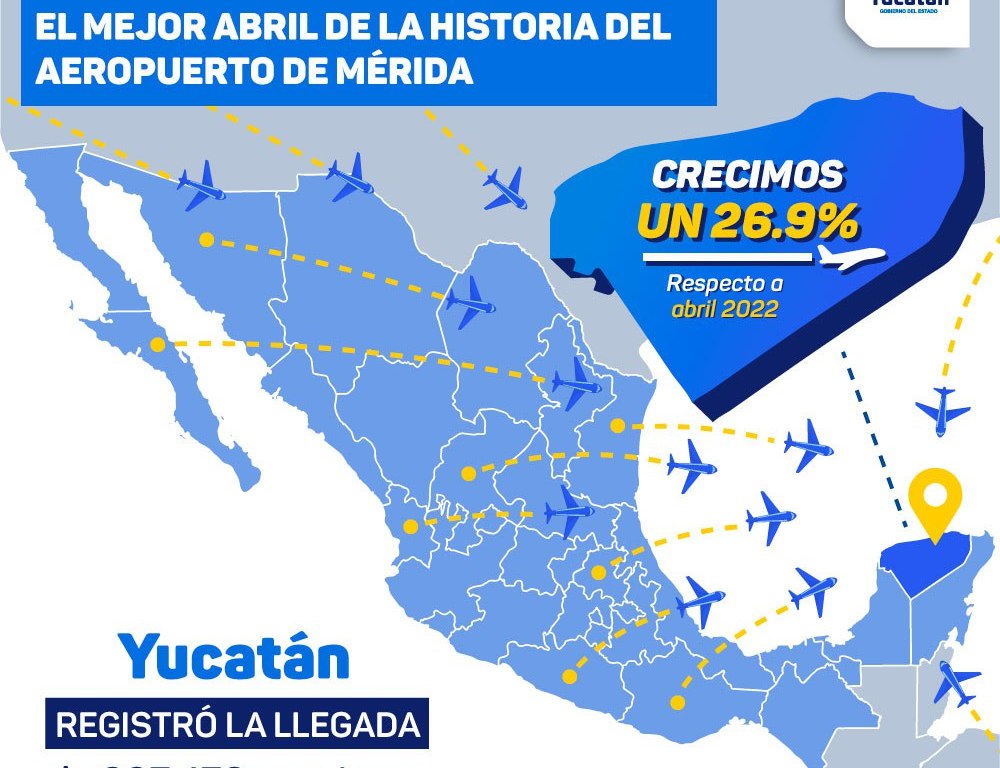 Así, abril de 2023 representa el mes de abril con mayor movimiento de pasajeros desde que se tiene registro, por lo que estas cifras máximas son el resultado del momento histórico que atraviesa Yucatán, luego de la peor pandemia, por lo que el estado se sigue transformando y avanzando en materia económica, resultado de la variedad de atractivos turísticos que ofrece al público nacional e internacional.