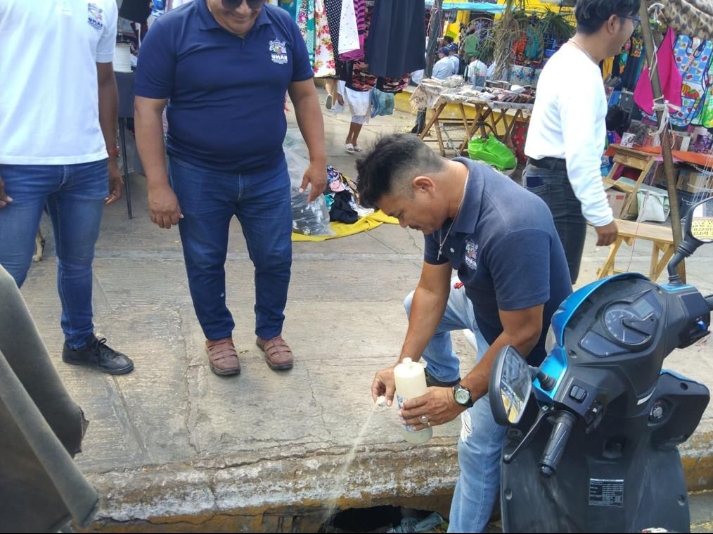 Umán, Yucatán a 16 de mayo de 2023.- Combaten la proliferación del mosquito transmisor de Dengue, Zika y Chikungunya en el municipio de Umán con el programa de abatización y fumigación que se implementa en espacios públicos como mercados, parques, iglesias entre otros.