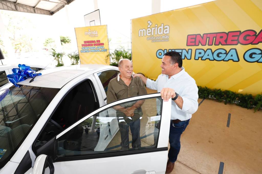 Mérida, Yucatán a 19 de mayo de 2023.- Mérida agradece la confianza de quienes, al cumplir con el pago de su impuesto predial, contribuyen a la construcción de una mejor ciudad para todas y todos, porque ustedes hacen posible que crezcamos parejo, con mejores obras y servicios en todo el municipio, que elevan el bienestar y la calidad de vida en Mérida, afirmó el Alcalde Renán Barrera Concha, durante la entrega de los cuatro vehículos último modelo a los ganadores del sorteo predial 2023 “Quien paga, gana”.