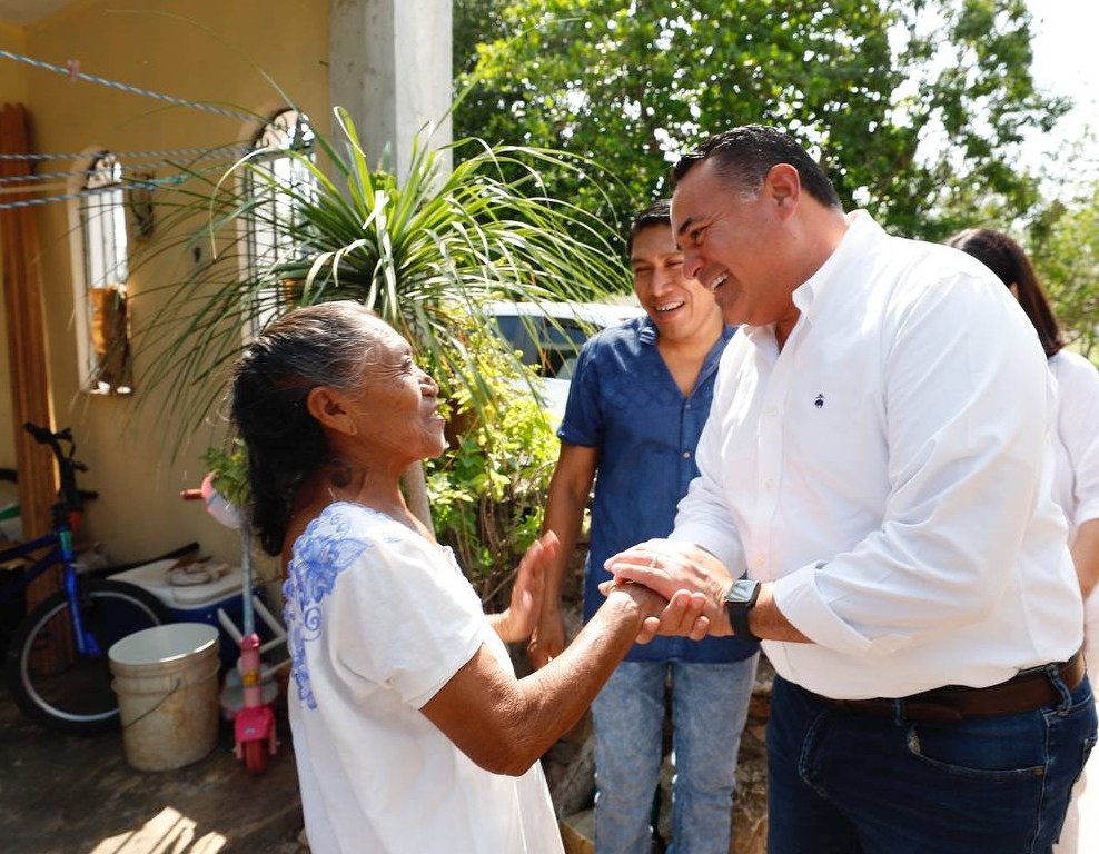 A su llegada a la comisaría de Yaxnic, el Alcalde visito previamente la casa de la señora Leobarda Chan Cimá, productora de abeja y beneficiaria del programa “Apoyos a Proyectos Productivos”.