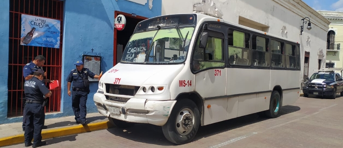 Mérida, Yucatán a 20 de mayo de 2023.- La Policía Municipal de Mérida tomó conocimiento hoy a las 9:10 horas de un hecho de tránsito en la calle 59 por 52, en el que estuvieron involucrados el autobús placas 09-ZBA-28 ruta 52 Norte y la motocicleta placas 92DLF6 conducidos por Alfredo Santiago M.N. y Pedro G. S. respectivamente.