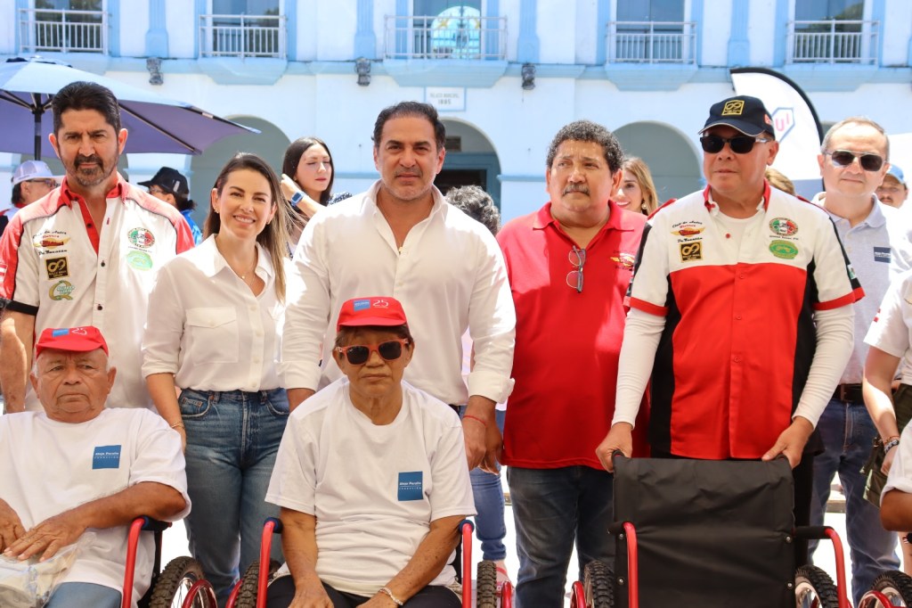 Progreso, Yucatán a 24 de mayo de 2023. Esta mañana, el alcalde Julián Zacarías Curi dio la bienvenida en los bajos del Palacio Municipal al director ejecutivo del Rally Maya México, Benjamín de la Peña Mara, quien entregó de manera simbólica un donativo de 20 sillas de ruedas para adultos, 7 bicicletas para jóvenes, 4 para niños y 2 para niñas, realizado por parte de la Fundación Peralta para beneficio de la comunidad de Progreso. Además, el equipo del rally entregó una placa conmemorativa del evento al primer edil.