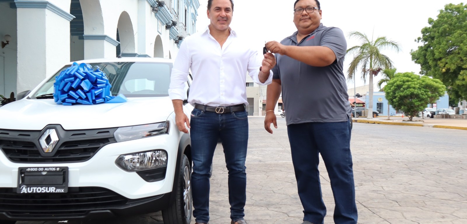 Progreso, Yucatán a 29 de mayo de 2023. Esta mañana, el alcalde Julián Zacarías Curi entregó un vehículo Renault modelo Kwid versión Inten 2023 al ciudadano José Tinal López, ganador del primer lugar de la “Rifa del impuesto predial 2023”, organizada por la Dirección de Finanzas y Tesorería del Ayuntamiento de Progreso con el propósito de premiar a aquellos ciudadanos que hicieron el pago de su impuesto predial de manera puntual durante los primeros 3 meses del año.