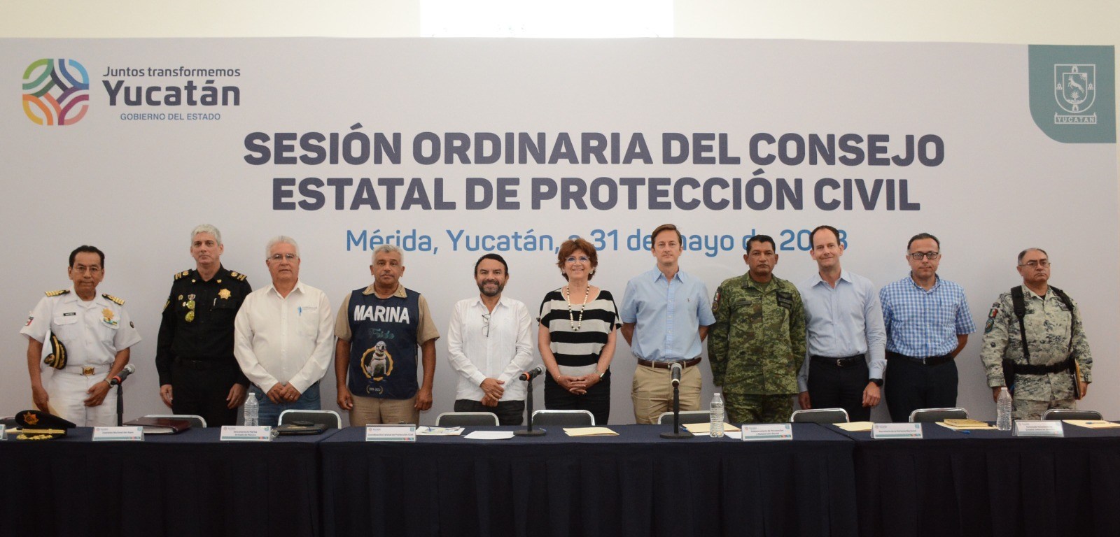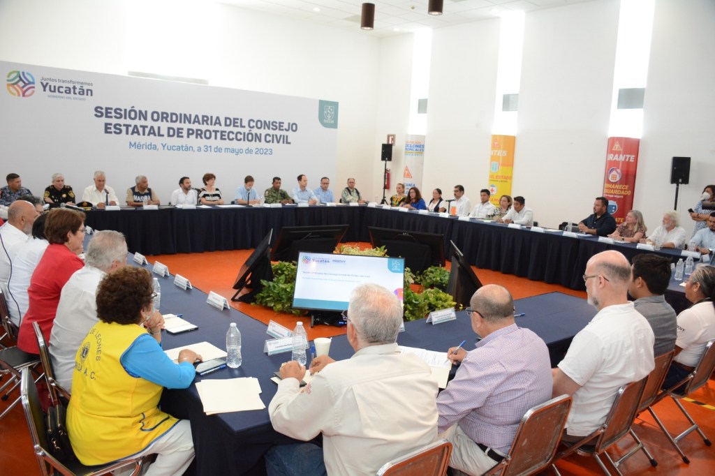 Mérida, Yucatán, 31 de mayo de 2023.- El gobierno del estado que encabeza Mauricio Vila Dosal llevó a cabo este día la Primera Sesión Ordinaria 2023 del Consejo Estatal de Protección Civil, con lo que Yucatán se declara preparado, con plena disposición de todos sus integrantes, incluyendo la sociedad civil y las fuerzas armadas y de seguridad, para la temporada de huracanes 2023 que inicia este jueves 1 de junio en el Atlántico y el Caribe.