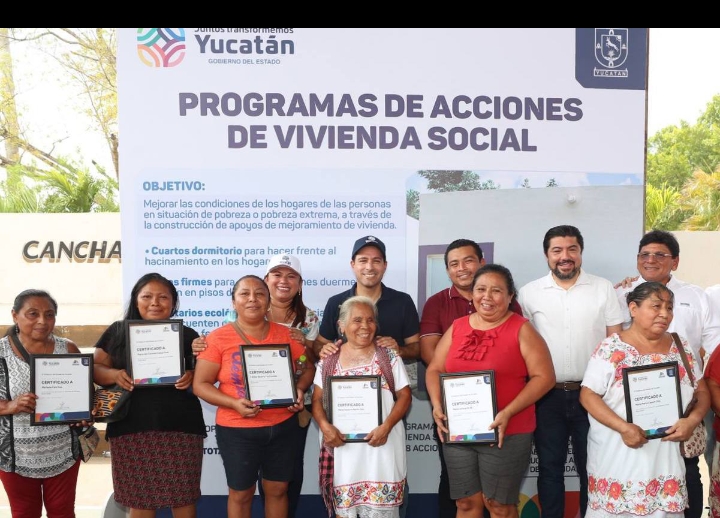 Al continuar con su agenda de trabajo, Vila Dosal realizó la entrega de acciones de Vivienda Social para la construcción de pisos, baños, cocinas ecológicas y cuartos adicionales, con lo que se mejora la calidad de vida de las familias al contar con espacios más dignos.