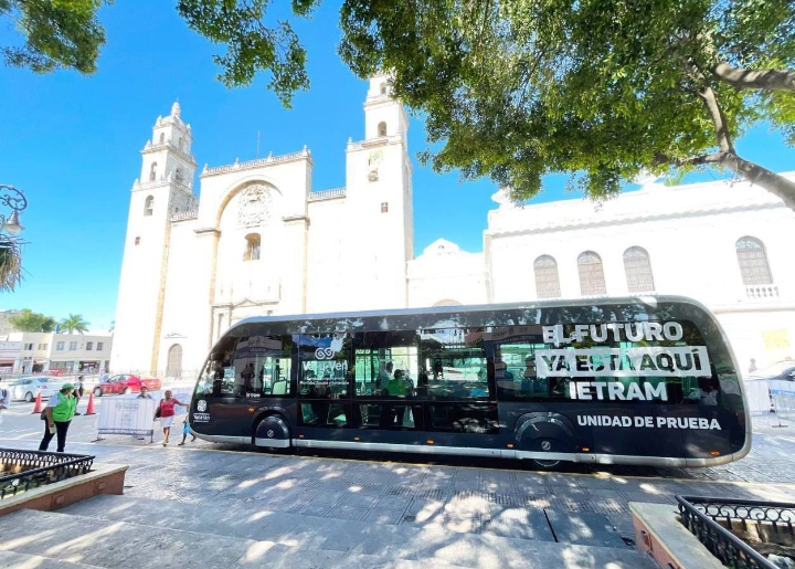 Esta unidad demo, que se encuentra en la Plaza Grande en el centro de la capital para que las y los yucatecos la conozcan de cerca, será 100% eléctrica, lo que lo hace un medio sustentable.