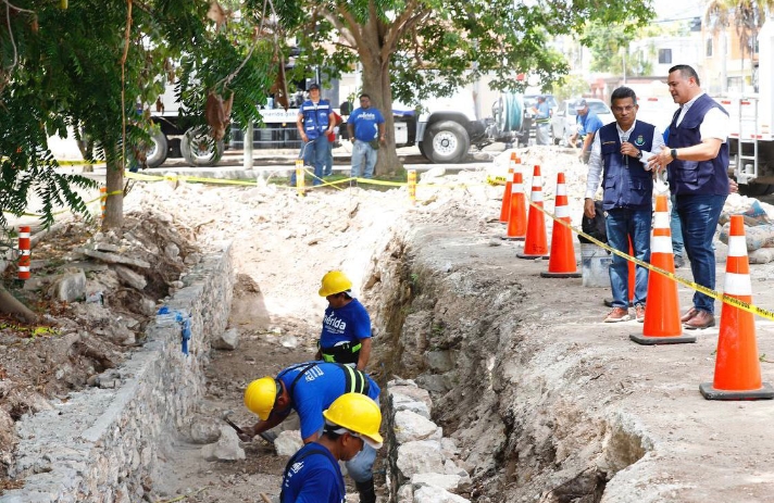 En el recorrido que realizó en el fraccionamiento Francisco de Montejo, el Alcalde supervisó las labores de desazolve de pozos y la construcción de aljibes en la zona, además que revisó con el director de Servicios Públicos Municipales, José Collado Soberanis, las tareas que se efectúan en toda la ciudad y sus comisarías.