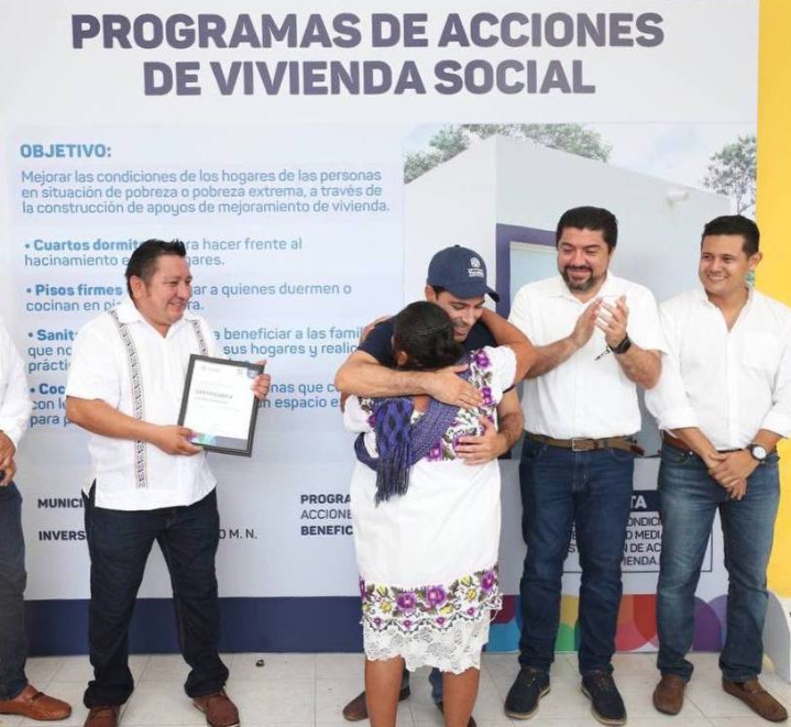 Durante una gira de trabajo por este municipio, Vila Dosal, junto con el alcalde anfitrión, Héctor Manuel Yah Mod, otorgó acciones del programa Vivienda Social, para la construcción de pisos, baños, cocinas ecológicas y cuartos adicionales, con lo que se mejora las condiciones de las familias, que contarán con espacios más dignos y seguros.