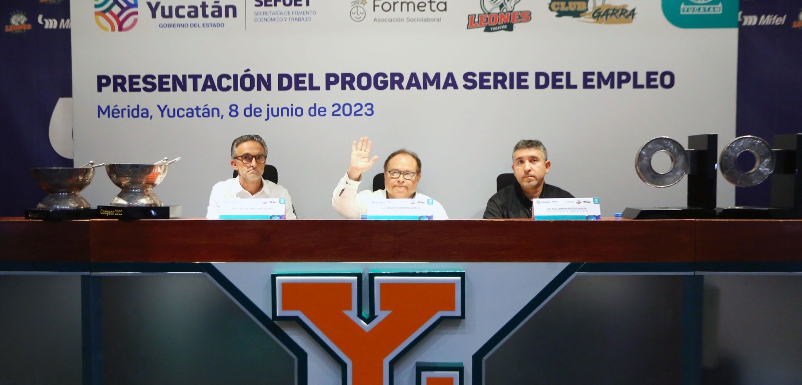 Mérida, Yucatán, 8 de junio de 2023.- Resultado de la alianza entre la administración que encabeza el Gobernador Mauricio Vila Dosal, la iniciativa privada y el sector deportivo, surge la Serie del Empleo para promover y reconocer la ocupación formal en la entidad, que arrancará junto con los juegos de Leones de Yucatán contra Tecolotes de Dos Laredos, los próximos 13, 14 y 15 de junio.