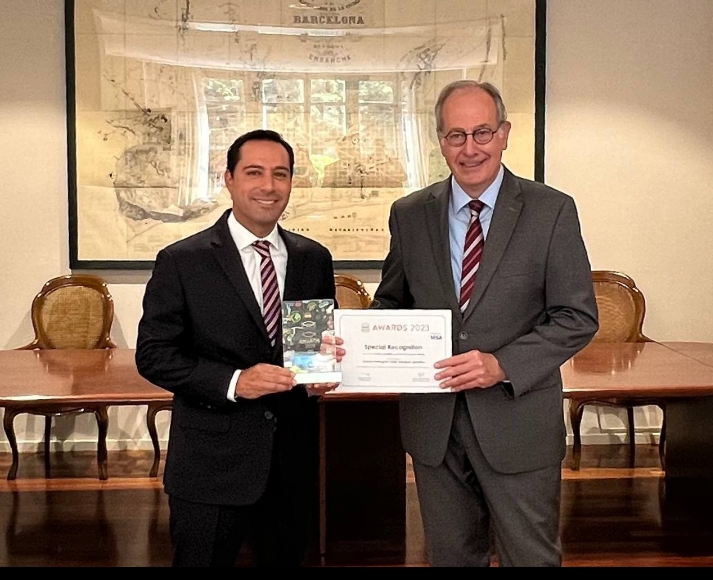 En Barcelona y a nombre de los yucatecos, Vila Dosal recibió dicha distinción como una de las mejores prácticas, por parte de Pere Calvet, Presidente Honorífico de UITP a nivel mundial, con lo que la entidad se convierte en un referente en la movilidad inteligente, moderna y sustentable, logrando que las y los yucatecos cuenten con un servicio público a la altura de lo que merecen.
