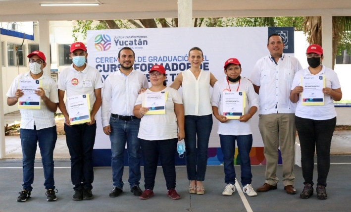 Yenni Carolina Fernández Cortés, Lidia Guadalupe Segovia Santos, Paola Oliva Bravo García, José Armando Cruz Alipi y Gustavo Moreno Caamal, recibieron sus diplomas como egresadas y egresados del Centro, con el perfil de “ayudante de tienda” para poder integrarse formalmente al campo laboral.