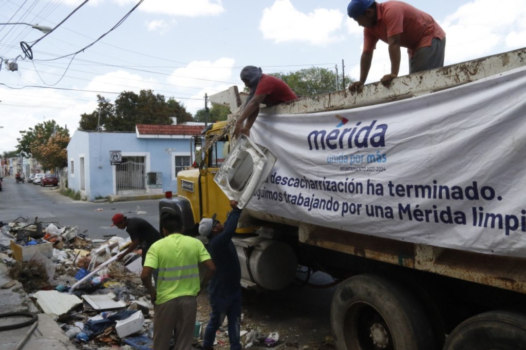Mérida, Yucatán a 14 de junio de 2023-. El Ayuntamiento de Mérida informa que la Dirección de Servicios Públicos Municipales trabaja a marchas forzadas para retirar de las calles de Mérida los cacharros y basura que la gente continúa dejando en las esquinas de diversas colonias y fraccionamientos, a pesar de que la campaña de descacharrización del gobierno del Estado concluyó hace varias semanas.