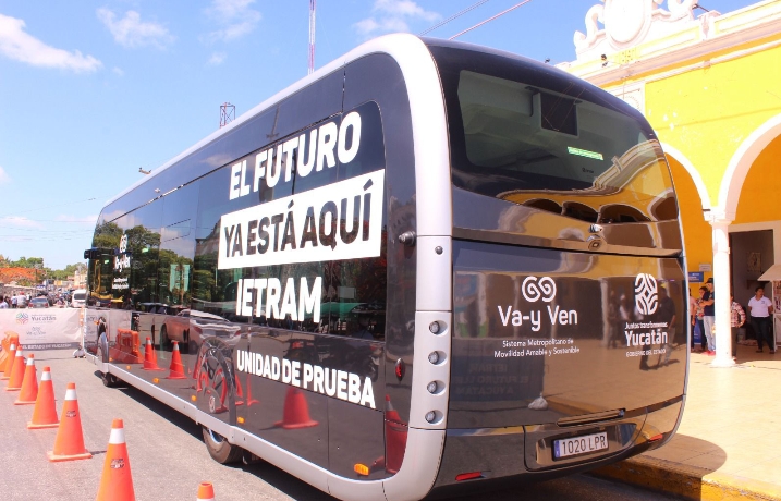 La unidad de prueba está en exhibición desde ayer jueves 15 de junio al martes 20 de junio en la plaza principal de Umán para que los umanenses puedan visitar y constatar las modernas instalaciones del Ie- tram que contará con camaras de vigilancia para seguir reforzando la seguridad para el beneficio de los ciudadanos.
