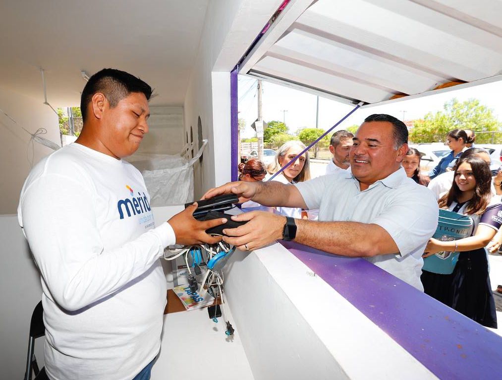 Mérida, Yucatán a 16 de junio de 2023-. De la mano de las nuevas generaciones que buscan sumarse a las acciones de protección y del cuidado del medio ambiente que lleva a cabo el Ayuntamiento, el Alcalde Renán Barrera inauguró un Mega Punto Verde en el Colegio de Bachilleres del Estado de Yucatán (COBAY) plantel Santa Rosa con el que apoyará los proyectos de reciclaje que realiza el colegio para beneficio de la comunidad.