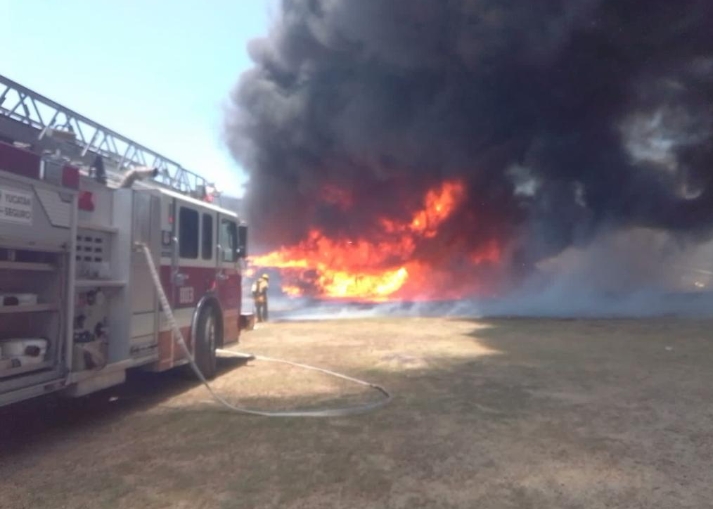Bomberos de la Secretaría de Seguridad Publica (SSP) sofocaron el incendio en una fábrica de bolsas de polietileno, en el fraccionamiento Libertad III, al sur de Mérida.