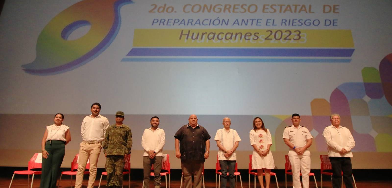 Mérida, Yucatán, 20 de junio de 2023.- Durante el Segundo Congreso Estatal de Preparación Ante el Riesgo de Huracanes 2023, representantes de las Fuerzas Armadas, Protección Civil estatal y municipal, la Secretaría de Seguridad Pública (SSP) y la Cruz Roja, reiteraron su determinación y compromiso para actuar en equipo, a fin de salvaguardar a la población, en esta temporada de ciclones tropicales.