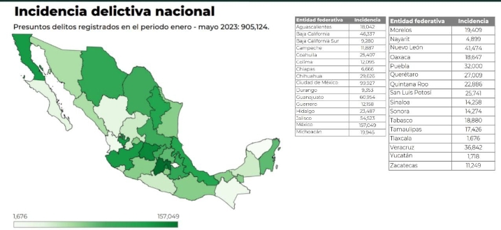A través de su reporte mensual, el Secretariado Nacional de Seguridad Pública (SESNSP) confirma que la paz y seguridad de la entidad son una constante, ya que la mencionada cifra significó un aumento de 0.3% en los casos de incidencia delictiva al pasar de 1,713 delitos en 2022 a 1,718 en 2023.