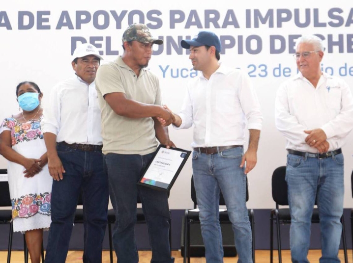 Durante su gira de trabajo por este municipio, acompañado del alcalde anfitrión, Lucio Balam Herrera, el Gobernador entregó certificados del programa Vivienda Social 2023; apoyos de los esquemas de pozos, sanitarios rurales, fertilizante y Seguridad Alimentaria, y tanto rehabilitación de calles como la remodelación del Centro de Salud de la comisaría de Xalau.