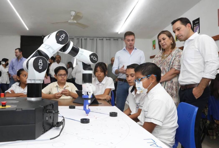 Mérida, Yucatán, 30 de junio de 2023.- El Gobernador Mauricio Vila Dosal presentó a la senadora Xóchitl Galvéz el programa piloto Clases de Robótica para Educación Básica, primero en su tipo en Latinoamérica, que busca fomentar el interés y la pasión por la tecnología entre alumnos de escuelas públicas de Yucatán, para desarrollar habilidades prácticas y técnicas, que les permitan prepararse para futuras carreras en este campo.