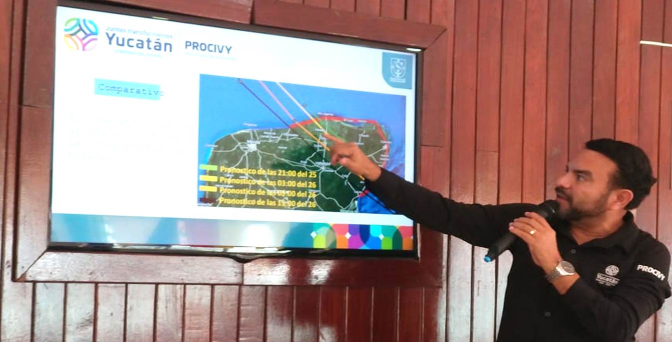El titular de Procivy, Enrique Alcocer Basto, sostuvo un encuentro con los coordinadores municipales de Protección Civil de la zona costera, oficiales de la Secretaría de Marina y funcionarios de gobierno, en el que resaltó la importancia de revisar y fortalecer los procedimientos de evacuación en caso de riesgo de impacto de los huracanes.