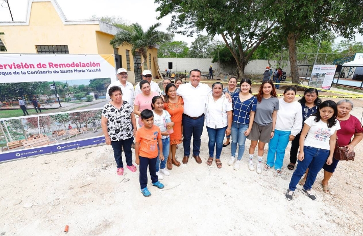 Como parte de ese compromiso con las y los habitantes de las comisarías, Barrera Concha visitó esta mañana Santa María Yaxché, para supervisar los trabajos de remodelación del parque de la población.