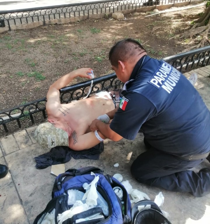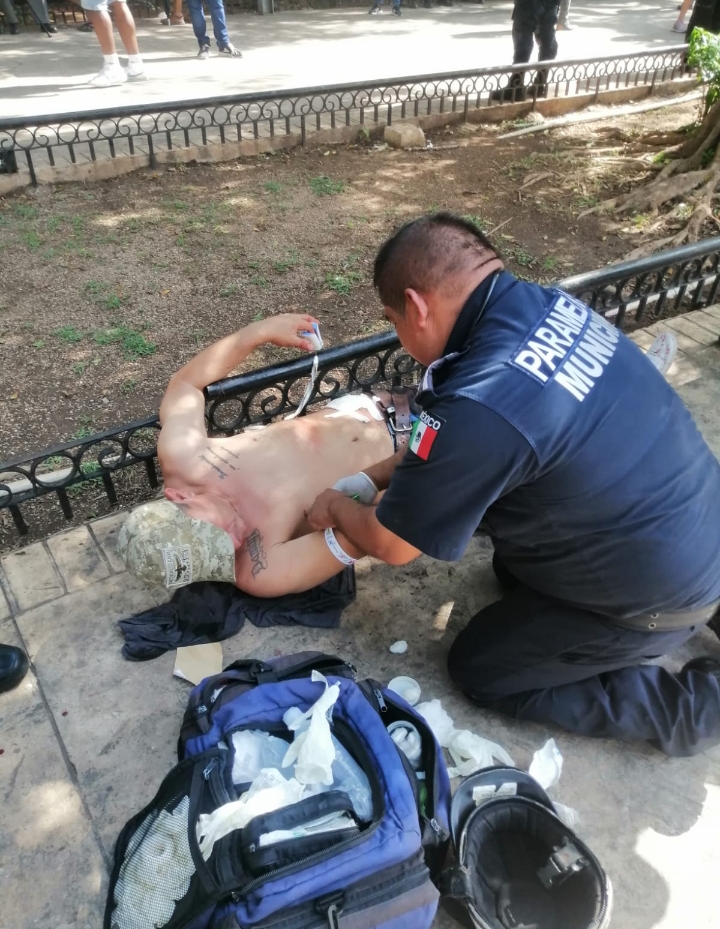 Mérida, Yucatán a 5 de julio de 2023.- Hoy a las 14:58 horas agentes de la Policía Municipal de Mérida asignados a la vigilancia del área de la Plaza Grande se percataron de una persona lesionada en el interior de la misma.