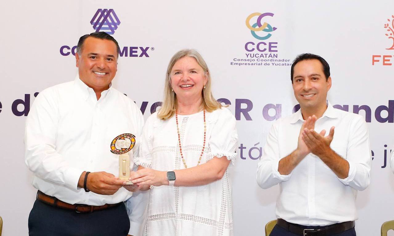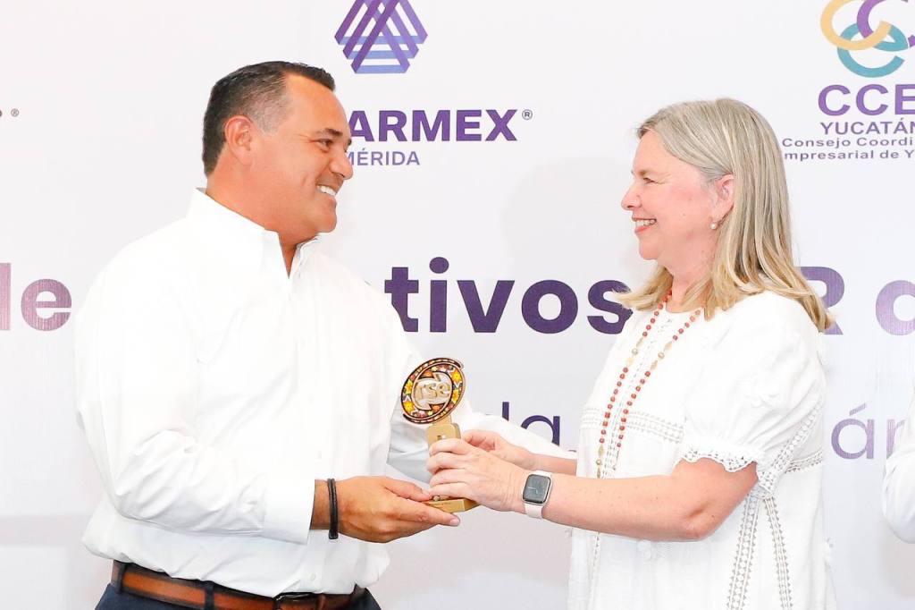 Además, recibieron distintivos como entidades promotoras el Ayuntamiento de Mérida y Coparmex.