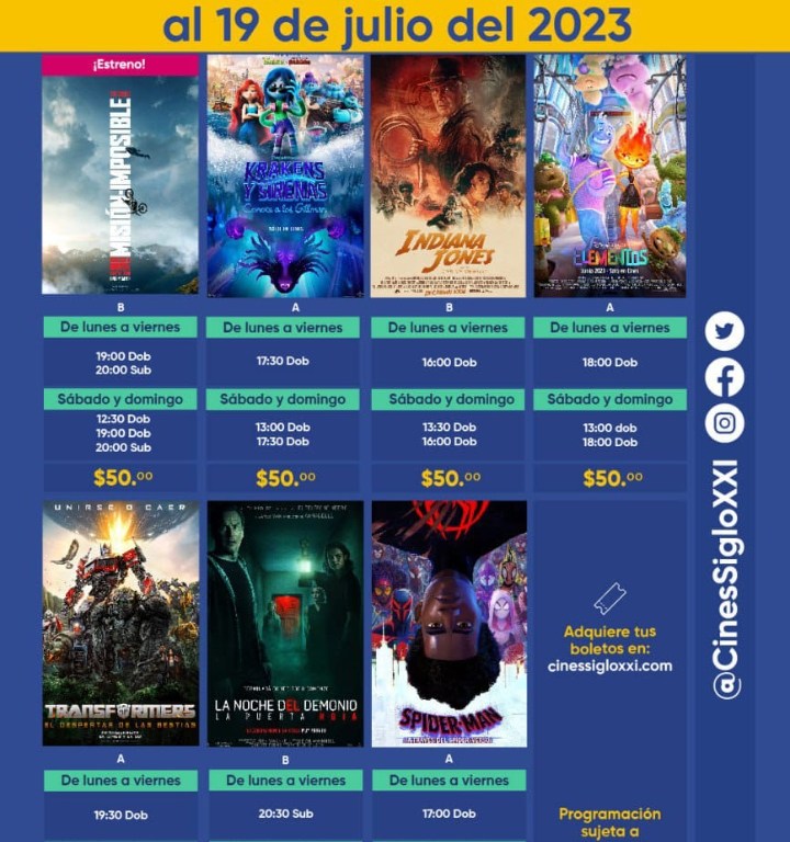 cinesCinesSigloXXI Esta es la cartelera de los #CinesSigloXXI. Tenemos el estreno de #MisionImposible. Visita http://www.cinessigloxxi.com Comparte esto: Haz clic para enviar un enlace por correo electrónico a un amigo (Se abre en una ventana nueva) Correo electrónico Más Haz clic para compartir en Facebook (Se abre en una ventana nueva) Facebook Haz clic para compartir en X (Se abre en una ventana nueva) X Me gusta Cargando...