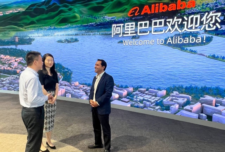 Hangzhou, China, 20 de julio de 2023.- Como parte de la misión comercial que realiza por China, el Gobernador Mauricio Vila Dosal se reunió con directivos de la importante firma china de comercio electrónico, Alibaba, para establecer lazos de colaboración y seguir promoviendo la incursión de cada vez más empresas yucatecas a esta plataforma, así como explorar las áreas de oportunidad en temas como turismo y agricultura, a fin de que Yucatán adquiera mayor presencia en el mercado del país asiático y esto se traduzca en más empleos y mejor pagados.