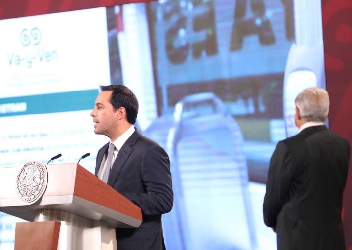 -Ante el Presidente Andrés Manuel López Obrador, Vila Dosal expone los avances del Ie-tram, la primera ruta 100% eléctrica y única en su tipo en Latinoamérica