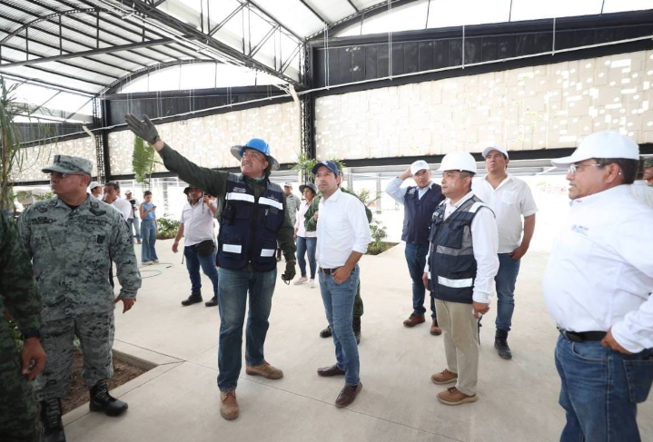 Con las explicaciones del residente de obra, Coronel Ingeniero Constructor, Herminio Jiménez Velázquez, Vila Dosal observó el estado de la ciclopista y los jardines donde ya crece el pasto y se plantaron parte de los 500 árboles que se sembrarán, así como el asta bandera de casi 50 metros que ondeará la Bandera Nacional en el interior del Parque.
