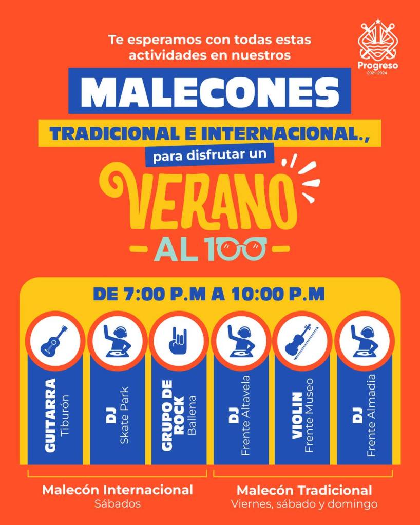 Podrás disfrutar el viernes, sábado y domingo en el Malecón Tradicional de 7:00pm a 10:00pm de eventos como: