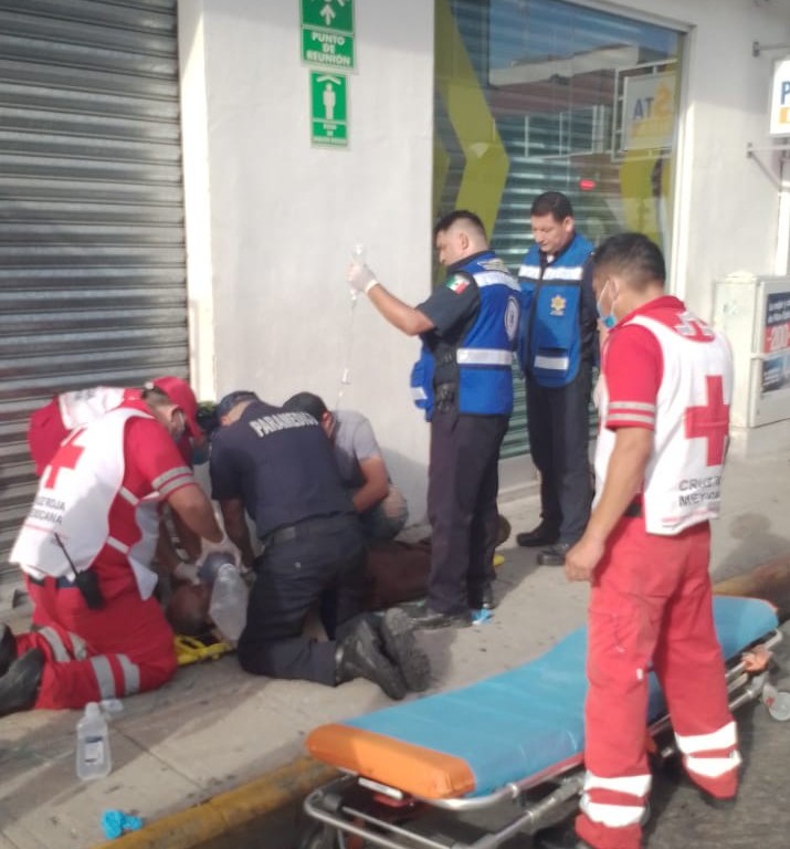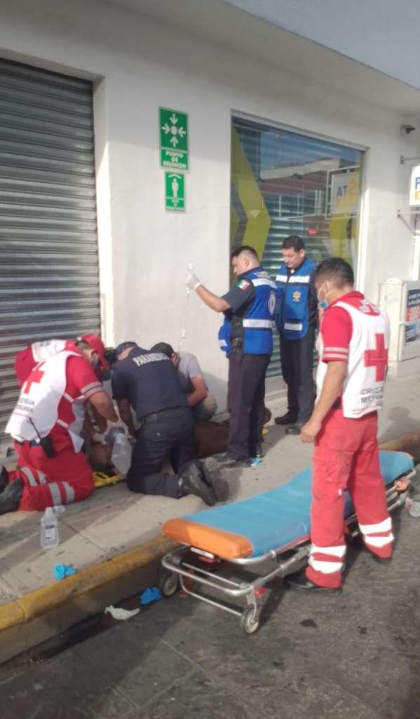 Mérida, Yucatán a 4 de agosto de 2023.- Con la oportuna intervención del equipo de paramédicos de la Policía Municipal de Mérida y de la Cruz Roja se logró reanimar a un hombre de aproximadamente 50 años de edad, quien había caído en un paro cardiaco en la calle 61 entre 54 y 56 del centro de la ciudad.